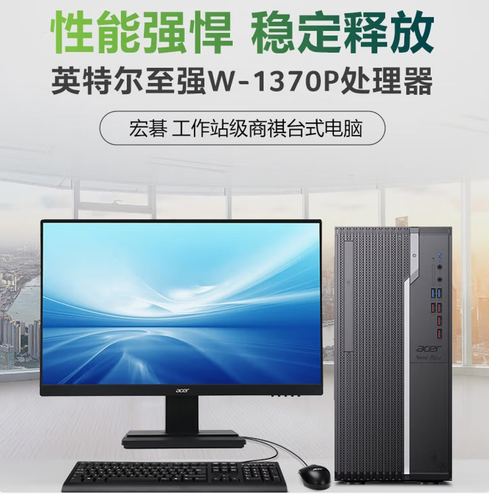 宏碁(acer) N4670 至强W-1370P十六线程高性能处理器 工作站级别台式主机电脑整机 23.8英寸显示器+至强W-1370P十六线程|8G|512G固态